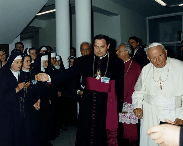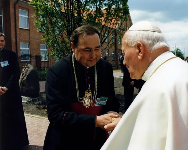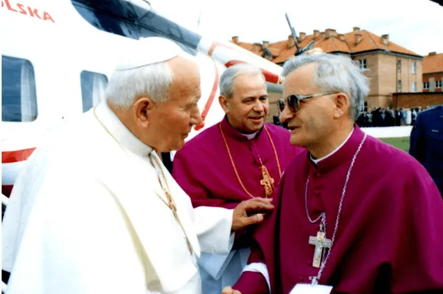 .....Chciałbym tu przedstawić drobny szczegół: otóż przy posadzonych drzewach, Budowniczy Seminarium Ks. Prałat Henryk Szymiec, umieścił obelisk, na którym znalazła się tablica z podobizną Papieża w geście błogosławienia, wraz z bardzo istotnymi słowami, jakie Ojciec święty wypowiedział do Rodaków, już na początku swego pontyfikatu: "Człowieka bowiem do końca nie można zrozumieć bez Chrystusa", a poniżej cytat Ks. Piotra Skargi: "Ten stary dąb, tak urósł, a wiatr go żaden nie obalił, bo jego korzeń był Chrystus". I kiedy papież przez kilka minut wpatrywał się w tę tablicę, czytając zarazem kilkakrotnie, bardzo powoli słowa: "Człowieka bowiem.", ks. Sekretarz (wówczas jeszcze infułat) Stanisław Dziwisz, zaczął przynaglać: "No, idziemy, idziemy.", w trosce o porządek czasowy wizyty. Ojciec Święty odwrócił się i wskazując palcem powiedział: "To są słowa, które najczęściej cytuje Ks. Dziwisz" - oczywiście chodziło o słowa: "idziemy".